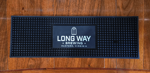 Keep your bar area clean and stylish with this durable Long Way Brewing bar mat.